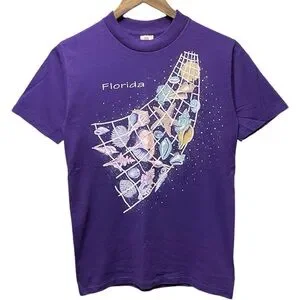 Description: vintage 80s or 90s Florida seashells and net front graphic short sleeve crewneck casual single stitch made in USA vacation T-shirt