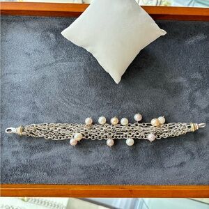 David Yurman 925 & 18k Gold Multi-Strand Pearl Bracelet 7"