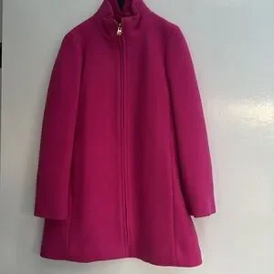 Gorgeous warm pink J.Crew zip up wool coat. Knit neck warmer, fully lined & insulated. Interior slash pocket.