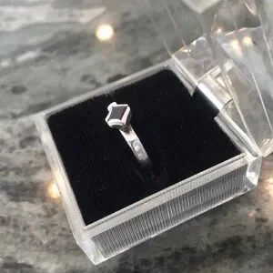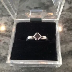 Beautiful sterling ring with an angular shape and a brownish red stone. Unique! Stamped Sterling 9.25 Size 9.5. Small stone, type of stone is un known, looks like dark garnet?