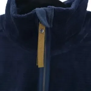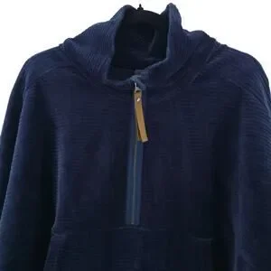 Prana Escambia Half Zip Stormy Night Blue Organic Cotton Velour Leather Pull L