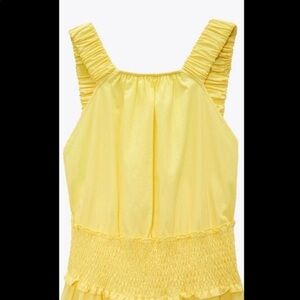 Zara yellow 100% cotton midi smocked dress NWT