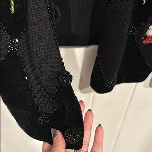 Jack B. Quick Black Festive Cardigan Christmas w/ Sequins beads & fur!