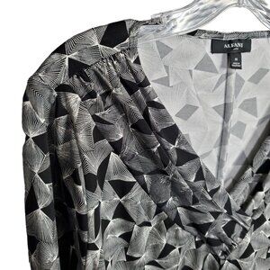 Alfani Womens Black & White Geometric Print Long Sleeve Dress 0X Polyester Spandex