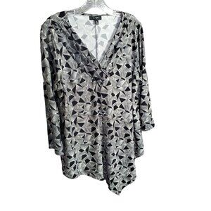 Alfani Womens Size 0X Tunic Asymmetric Hem Geometric Print Fluid Jersey