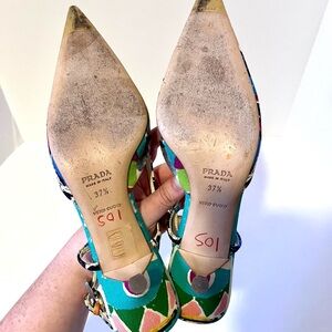 Prada Canvas Slingback Pumps in excellent condition. Main signs of wear are on soles. Size 37.5. Comes with the dust bags.
