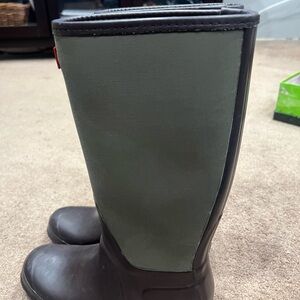 Used Two Tone Hunter Boots, Womens size 8 mid calf, green and brown