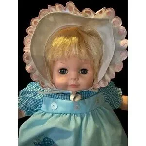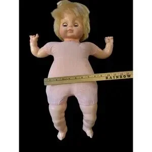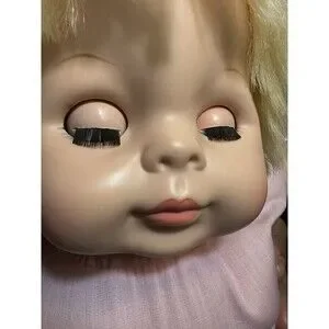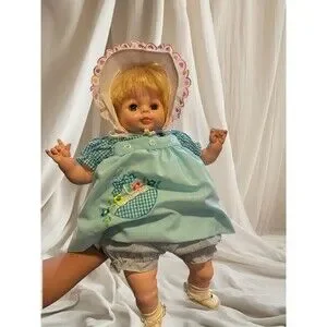 This 222-inch Vogue BABY DEAR ONE doll is a vintage piece from 1965, with a redesigned face and beautiful blonde hair. The doll's complexion is light, and it comes with 24 pieces in total. The set includes only the doll itself, as shown in the pictures. This doll is perfect for collectors or those who appreciate vintage items. It is categorized under Dolls & Bears, Dolls, Clothing & Accessories, and Dolls & Doll Playsets.