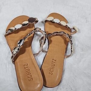 Schutz Acacia Flat Sandal Gold/platina women's size 8.5 B
