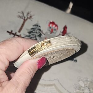 Elegant and compact, this Loewe beige round leather coin purse is perfect for keeping your coins organized. Crafted with high-quality materials, it combines style and functionality.