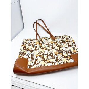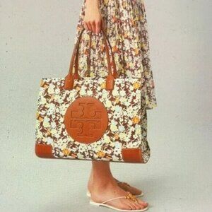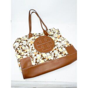 Tory Burch Ella Printed Tote Bag Reverie Combo Floral Leather Trim Nylon Large