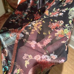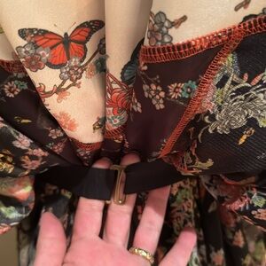 HAH PRINTED LONGLINE CAFTAN BILLOWY SILHOUETTE BUTTERFLY PRINT BELTED SIZE XS