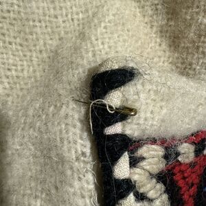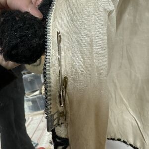 The acetate lining is not in very good condition. It has been safety pinned on in several spots