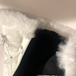 White Faux Fur Goth Platform Knee High Boots With Zippers Size 41