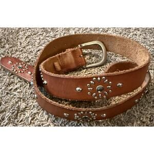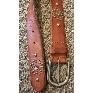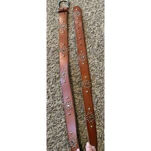 Cowboy 8 Belt Brown Leather Studded Rhinestones 1.25”x49” Western Cowgirl Rodeo