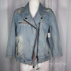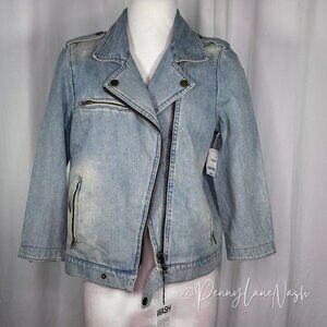 NWT Gap 1969 Denim Biker Jacket Beach Blue Size Medium