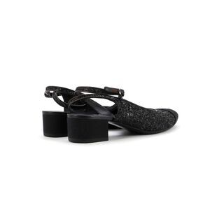 Chanel Women's CC Cap Toe Ankle Strap Slingback Pumps Glitter Leather with Grosg