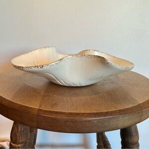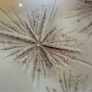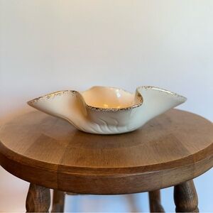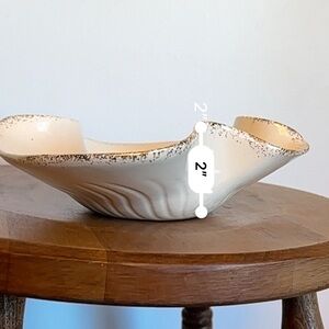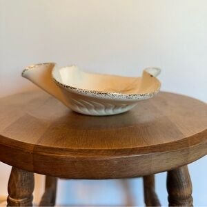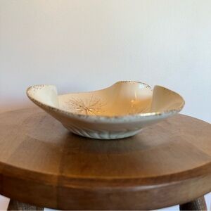 Gorgeous mid century atomic starburst bowl/trinket dish made by California Originals Pottery. This is an original piece #741. Gold and ivory in colour. The approximate measurements can be found in the attached listing photos. On the back of the piece there is a blue dot that seems to be glazed onto the piece. Otherwise the piece is in great condition.