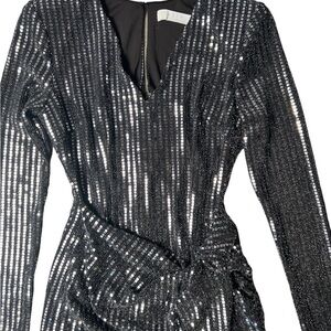 ASTR THE LABEL PARIS METALLIC Silver LONG SLEEVE MINI DRESS SIZE SMALL
