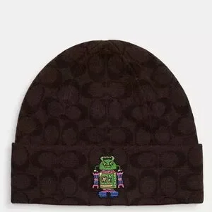 Coach Cosmic Coach Signature Robot Print Knit Beanie nwt in packaging
