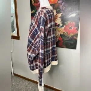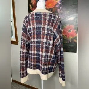 Banana Republic Red Plaid Alpaca Wool Fuzzy V neck Oversized Sweater Sz M Preppy