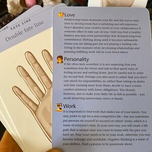 These wonderful cards can be used to analyze your palm; line by line. Discover the secrets of your character, love life and career. Have hours of fun for yourself and with others.