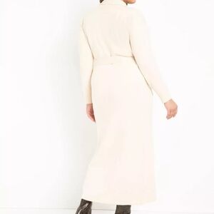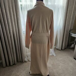 Turtleneck. Puffed sleeves with ribbed cuffs. Side slit. Self-tie belt included.