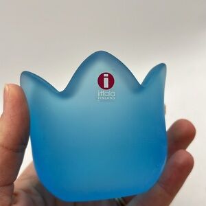 Vtg Iittala Tulip Frosted Glass Votive Tealight Candle Holder Collectible Blue