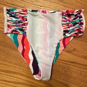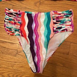 Bar III stunning NWOT bikini - tried on but never worn (too small for me 😔). Bought at Macy’s - size is XS (top & bottom). Adjustable shoulder straps & bra strap - no underwire. Item is cross listed & may be given as a gift 🎁 (so please purchase quickly if interested!). Waist measures approx 24”. Price is firm solid. Ty for viewing!