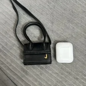 Used micro mini J bag Tiny, shown next to some air pods for size reference