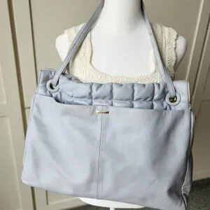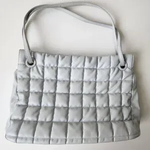 Vince Camuto Jass Quilted Puffy Large Shoulder Bag Tote Gray Faux Leather Soft