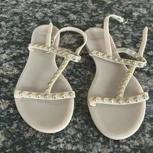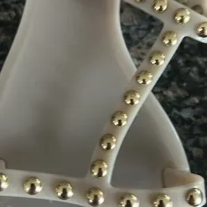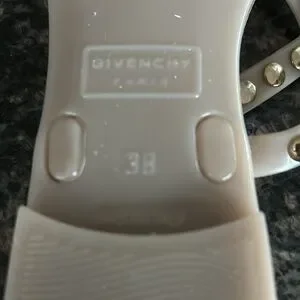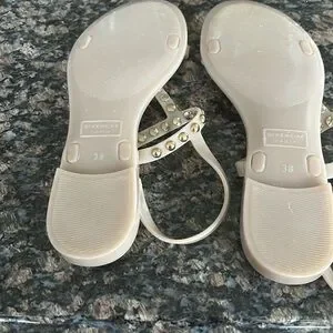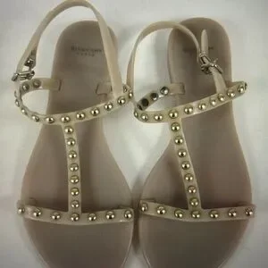 GIVENCHY SANDALS JELLY BEIGE W GILD STUDS T STRAP SLIP ON SIZE 38
