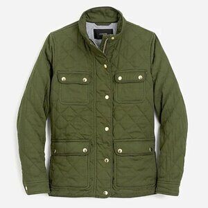 J Crew Field Jacket Womens Small Green Quilted Downtown Zip/Snap Cotton Ladies