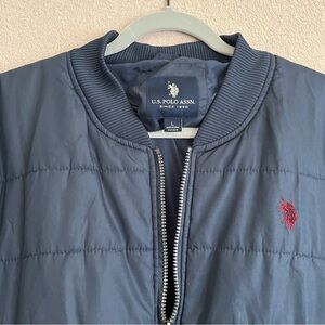 US Polo Assn Puffy Bomber Varsity Jacket-Navy Blue-Men’s L/Large-Casual-Winter