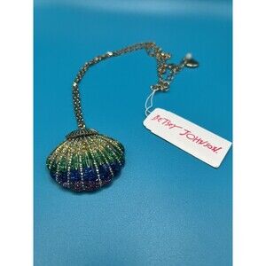 NWT Betsey Johnson Gold Tone Resin Glitter Rainbow Seashell Necklace