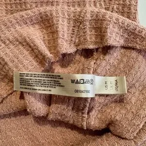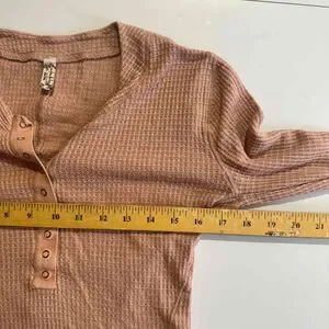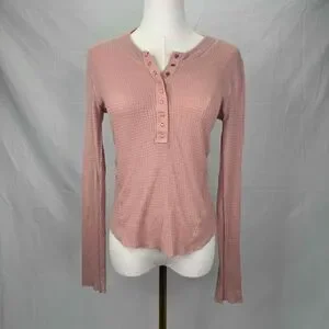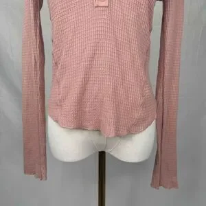 Free People OB1042192 Pink Tan Button Placket Textured Long Sleeve Henley Top Size Medium