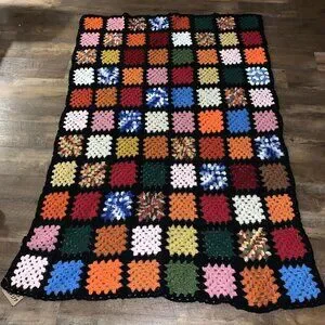 Vtg GRANNY SQUARE AFGHAN Crochet Cottage Core Throw Blanket 66”x43” T100. Condition is Pre-owned. Shipped with USPS Ground Advantage.
