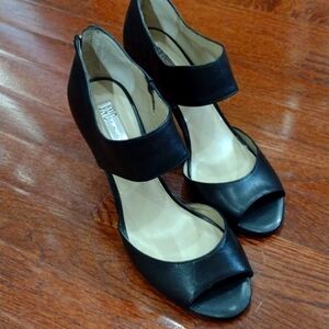 Black leather heels. Women's size 8. Some marks from storing other than that excellent condition. Thank you for looking!