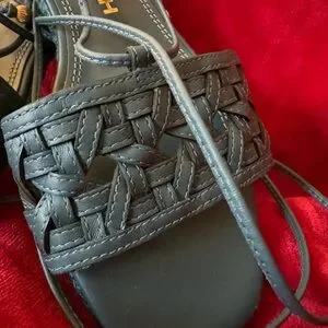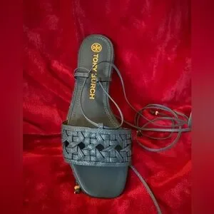 new in box- comes with TB shoe bag. SZ 8 These blue hand-woven basket-weave on this espadrille is an interpretation of a classic rattan pattern, based on Tory's love of natural materials.