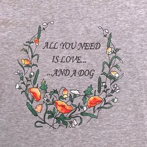 Novelty Crewneck Sweatshirt Womens Medium Grey All You Need Is Love And A Dog