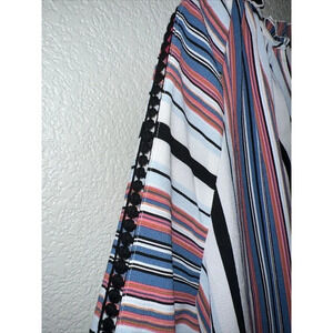 This beautiful multicolored blouse from Lane Bryant is a must-have for any plus-size woman's wardrobe. The long sleeves and comfortable fit make it perfect for any occasion, whether you're dressing up for a night out or keeping it casual with a pair of jeans. The vibrant colors will make you stand out from the crowd, and the high-quality materials ensure that it will last for years to come.