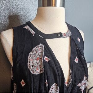 Free People Snap Out of It Sleeveless Tree Swing Tunic top or mini dress in black.size medium. In good preowned condition no stains holes or snags. Smoke free pet friendly home.