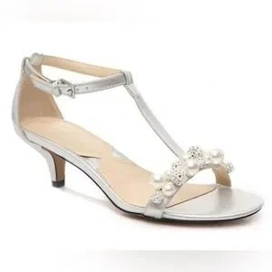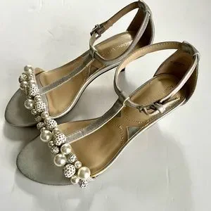Adrienne Vittadini Kalina Silver Pearl Dress Heels Size 6 M Fit like 6 1/2