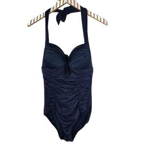 SEAFOLLY Swimsuit Womens US 8 Navy Blue Maillot Halter One Piece Swimsuit Beach