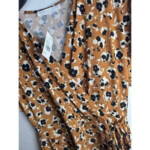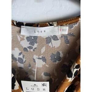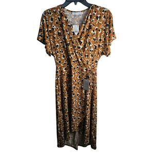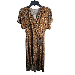 Lush Floral Print Brown Short Sleeve Knee Length Wrap Dress Size Small NWT