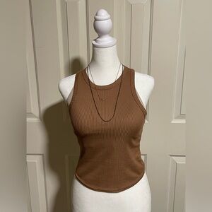 Olivia Ray New York brown ribbed sleeveless t-shirt. (Necklaces not included)