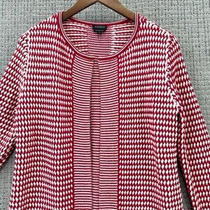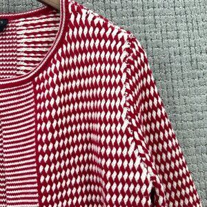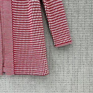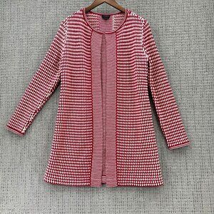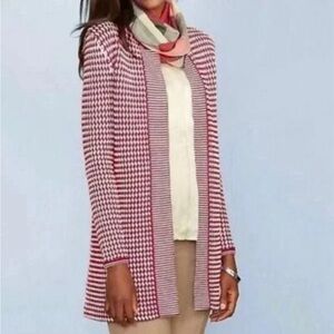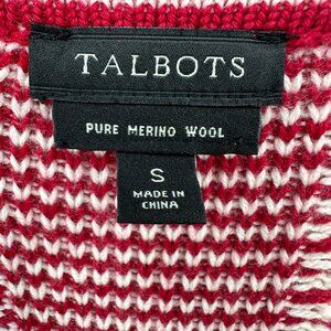 Talbots Open Cardigan Women's Size Small Red White Sweater Pure Merino Wool