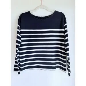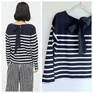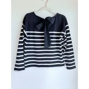 J.Crew Women's Mariner Cloth Bow Back Striped Long Sleeve Top in Navy & White S