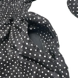 WeWoreWhat | Women | 100% Linen Black Polka Dot Smocked Short Romper | Large
