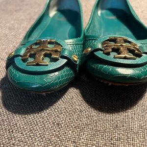 Tory Burch Women’s Minnie Travel ballet flats - alligator green - size 9
